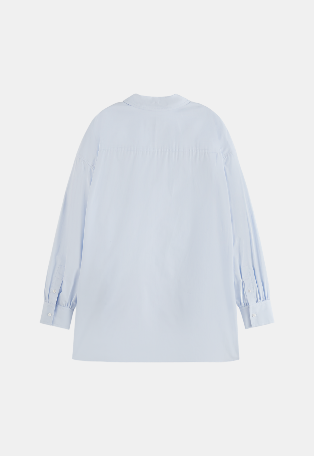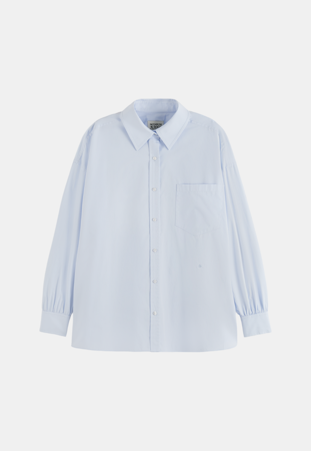 חולצה מכופתרת לנשים מבית המותג סקוצ' אנד סודה. בגזרת אוברסייז רחבה עם צווארון קלאסי, שרוולים ארוכים וסגירת כפתורים בחזית. בשילוב כיס בצד החזה.
