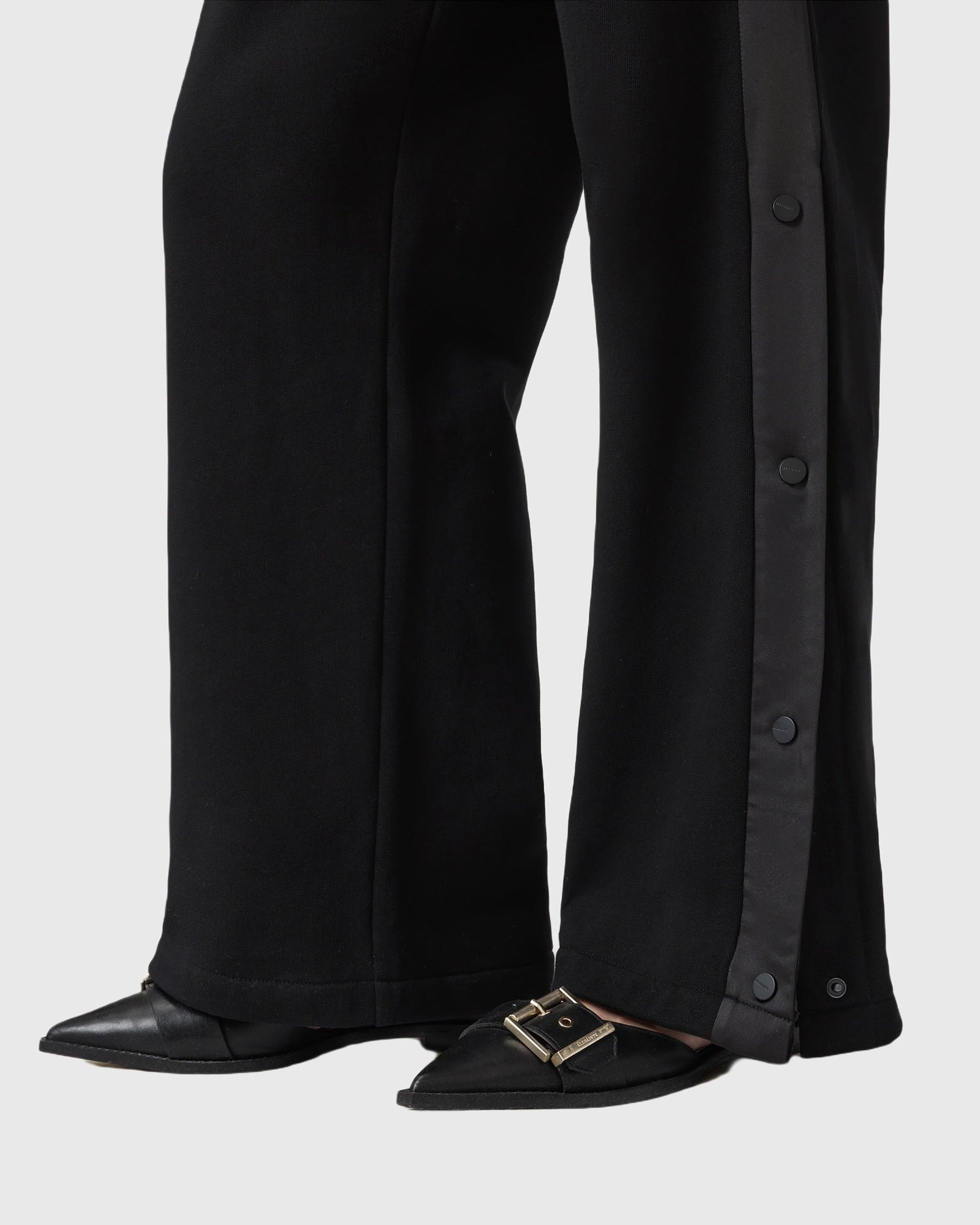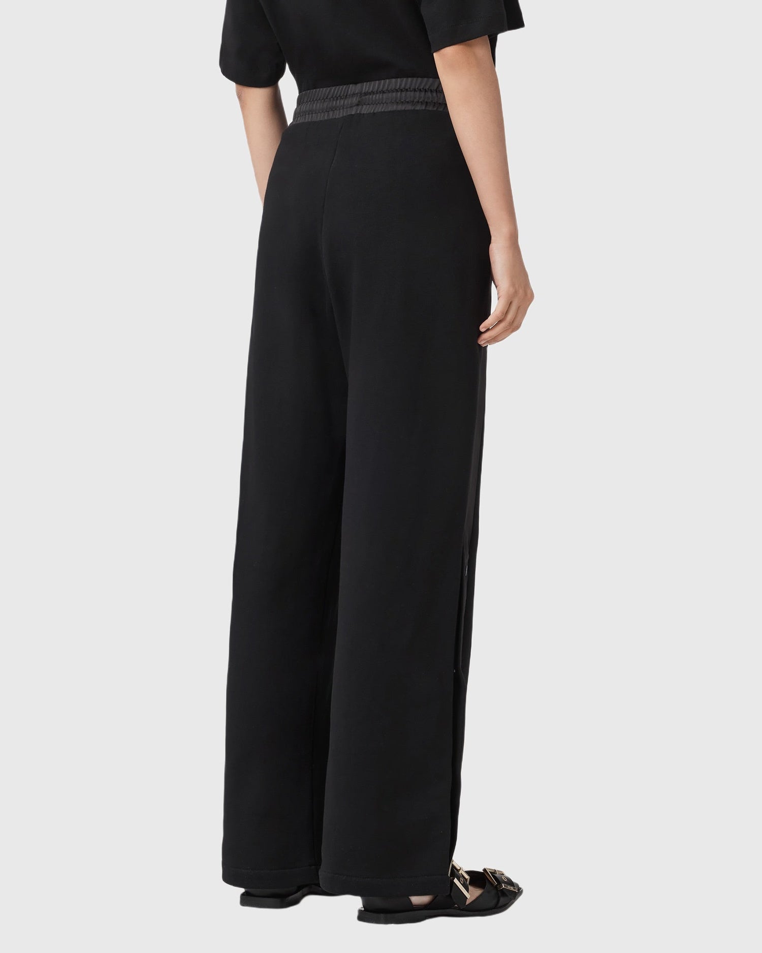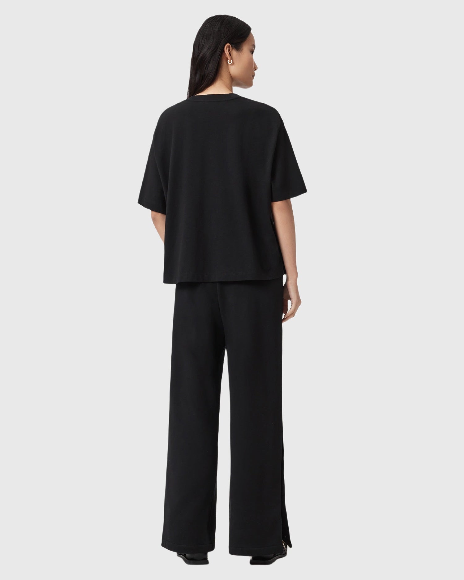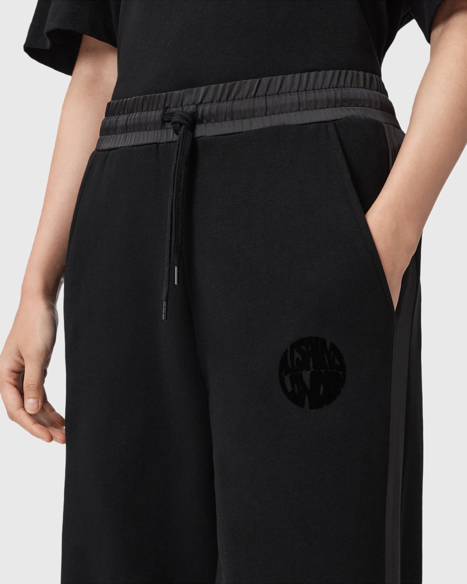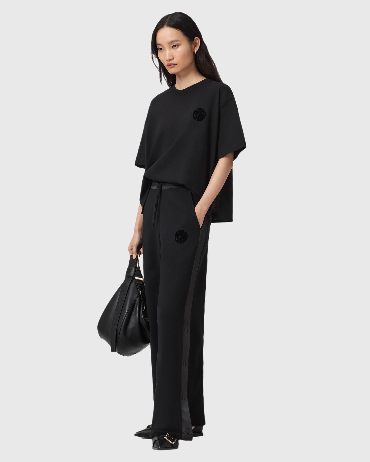 מכנסיים ארוכים לנשים מבית המותג אולסיינטס. בגזרת טרנינג ישרה, עם גומי ושרוכים במותן, הדפס לוגו המותג בצד הירך ושני כיסים קדמיים.