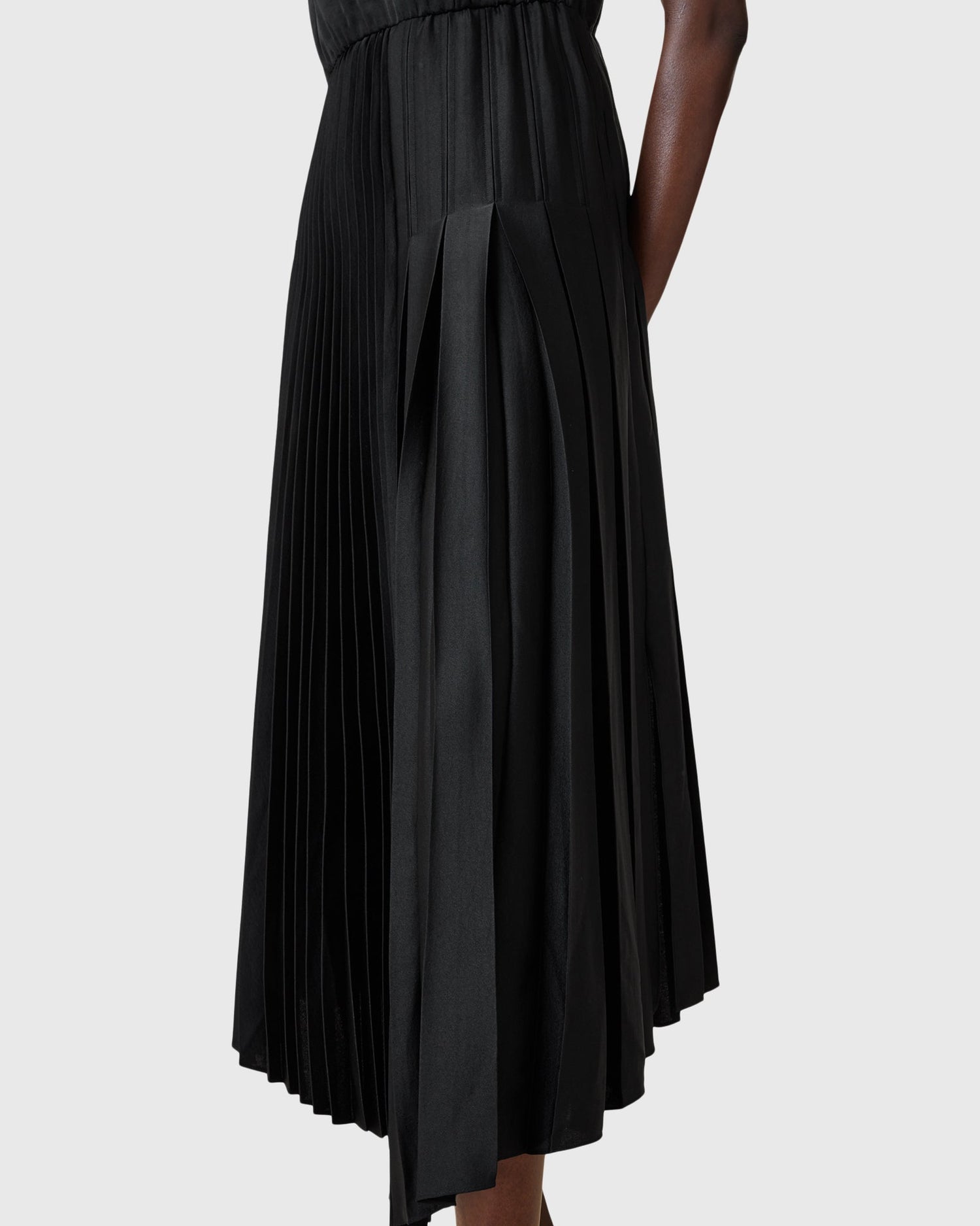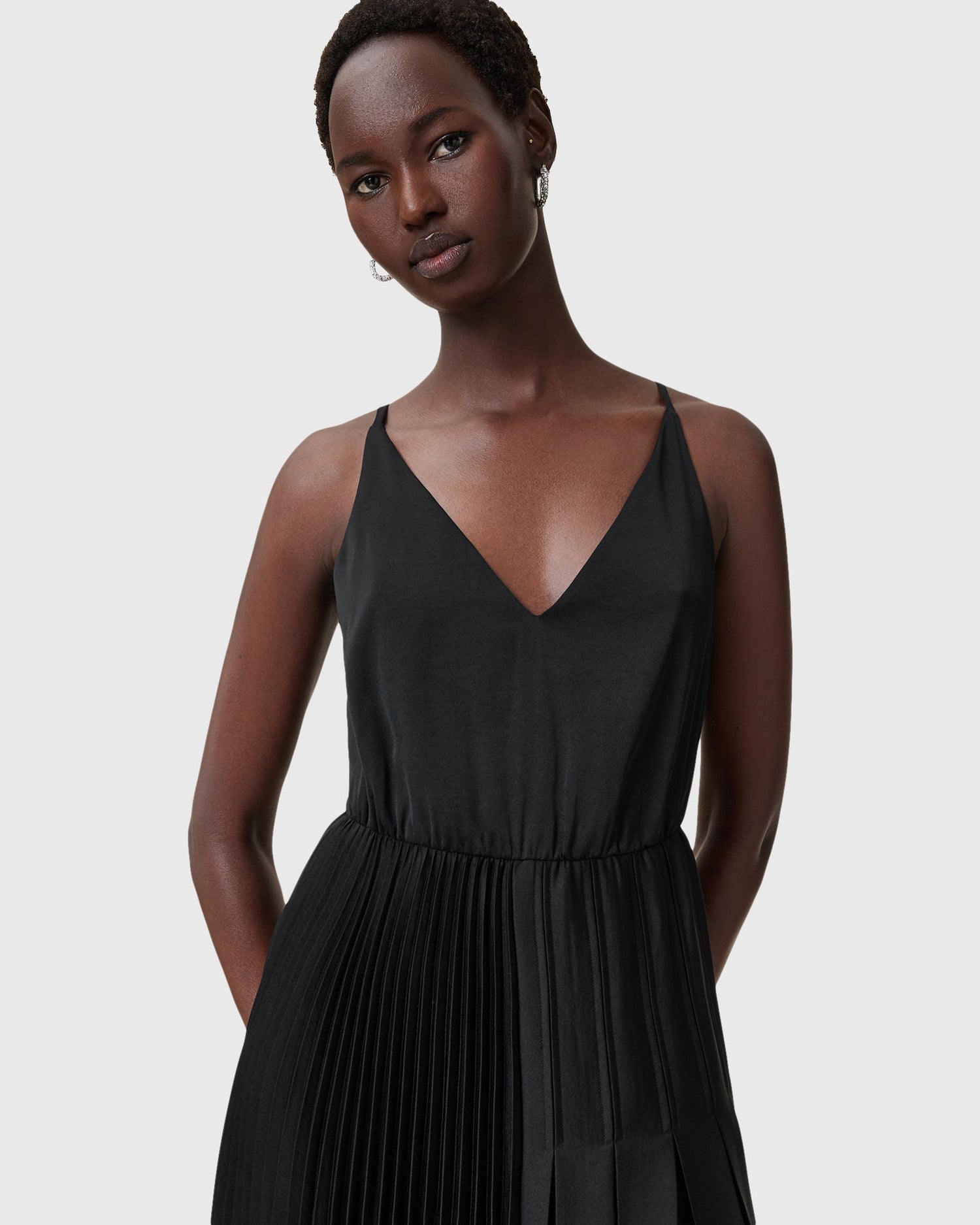 שמלת מידי 2 ב- 1 מבית המותג אולסיינטס. בגזרה קלאסית רגילה, עם חולצת טי שירט הניתנת להפרדה, בסיס השמלה עם מפתח וי, כתפיות דקות וחצאית משוחררת.
