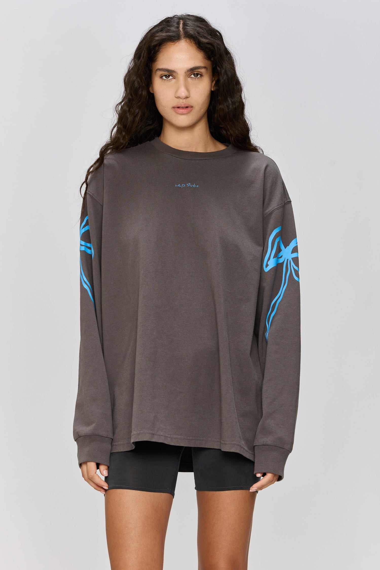 בגזרת אוברסייז, עם מפתח עגול, שרוולים ארוכים, בד כותנה איכותי, 100% כותנה, אינו מתכווץ בכביסה ושומר על צורתו. בשילוב הדפס קטן בחזית, בגב ובשרוולים.