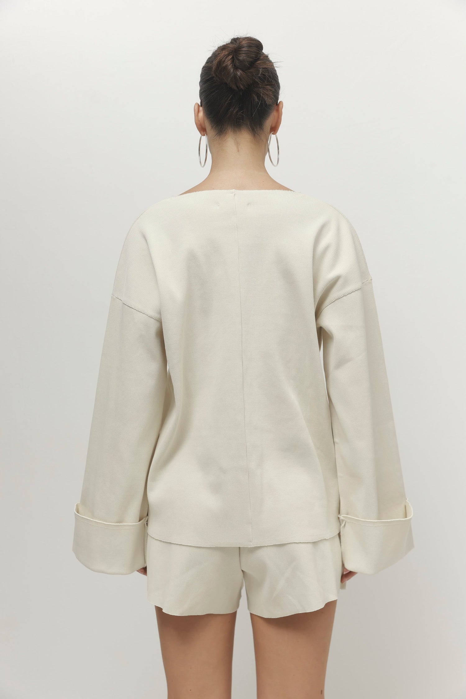 חולצה מבד ריב עבה ואיכותי, עם שרוולים ארוכים ומתרחבים ומחשוף עמוק מ- מומלץ לשלב עם המכנסיים התואמים