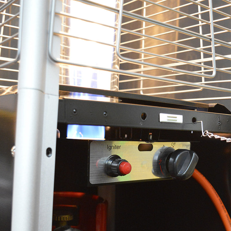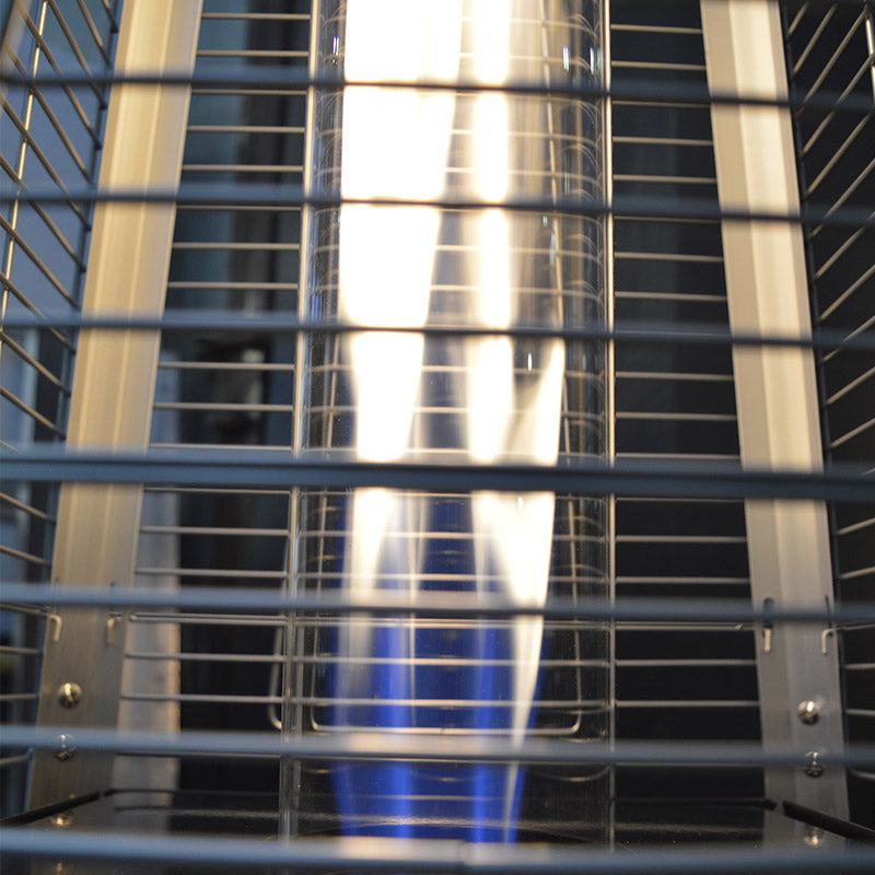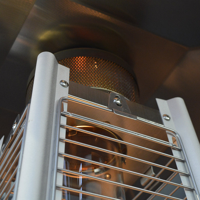 פירמידת החימום כוללת גוף מנירוסטה עמיד בפני פגעי מזג האוויר, צינור זכוכית קווארץ, מערכת הצתה פיאזואלקטרית ואביזרי שליטה פשוטים להפעלה. גלגלי ניידות מובנים מאפשרים מיקום קל בכל מקום בחוץ.